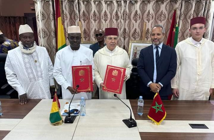 وقعت المملكة المغربية وجمهورية غينيا، يوم الخميس 08 فبراير 2024 بالعاصمة الغينية كوناكري، اتفاقية شراكة تتعلق بتدبير وتسيير المركب الديني محمد السادس بكوناكري، الذي تم إعطاء انطلاقة أشغاله بحضرة مولانا أمير المؤمنين صاحب الجلالة الملك محمد السادس نصره الله بتاريخ 24 فبراير 2017.
