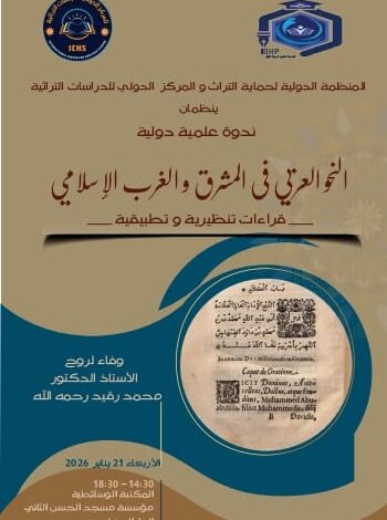نظمت المنظمة الدولية لحماية التراث والمركز الدولي للدراسات التراثية ندوة علمية دولية بعنوان: “النحو العربي في المشرق والغرب الإسلامي: قراءات تنظيرية وتطبيقية”.